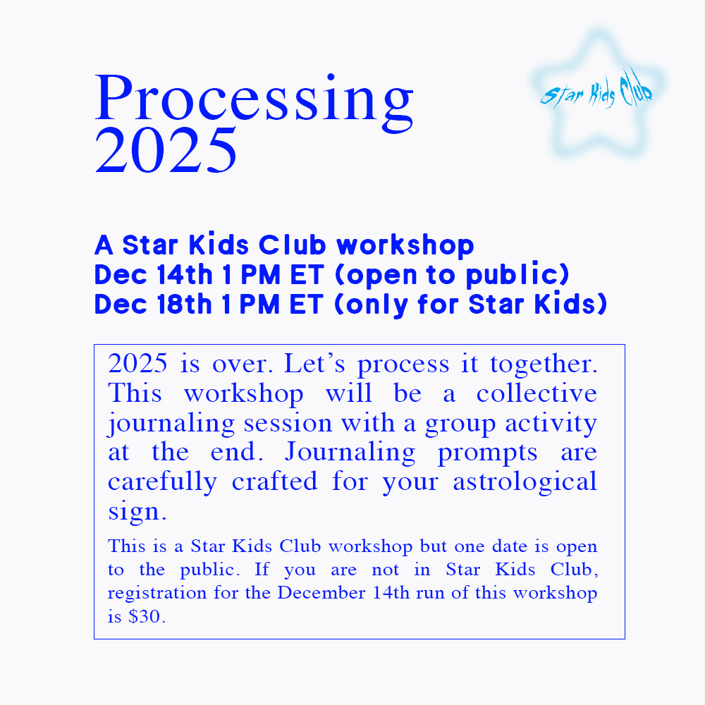 2025 is over. Let’s process it together. This workshop will be a collective journaling session with a group activity at the end. Journaling prompts are carefully crafted for your astrological sign.